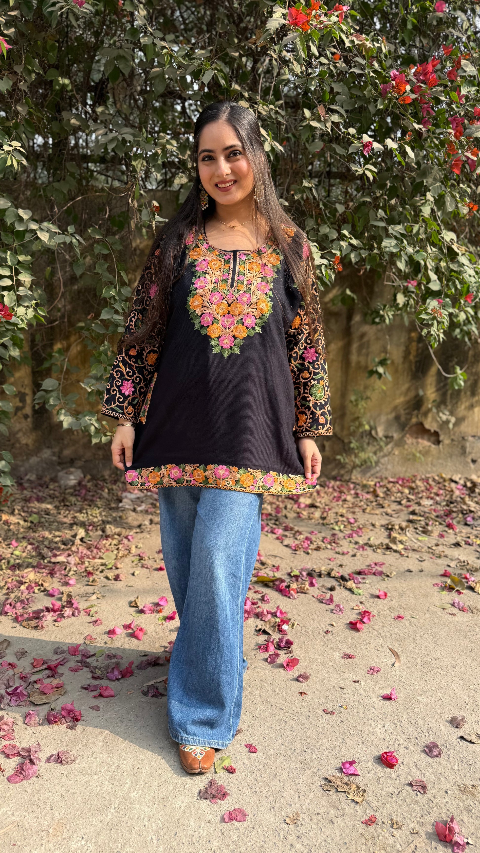 Black Embroidered Phiran  in magical hues of Black are chic, comfortable, and perfect for fun vibes! The set features a Embroidered Phiran . Complimenting the top, comes in woollen fabric.