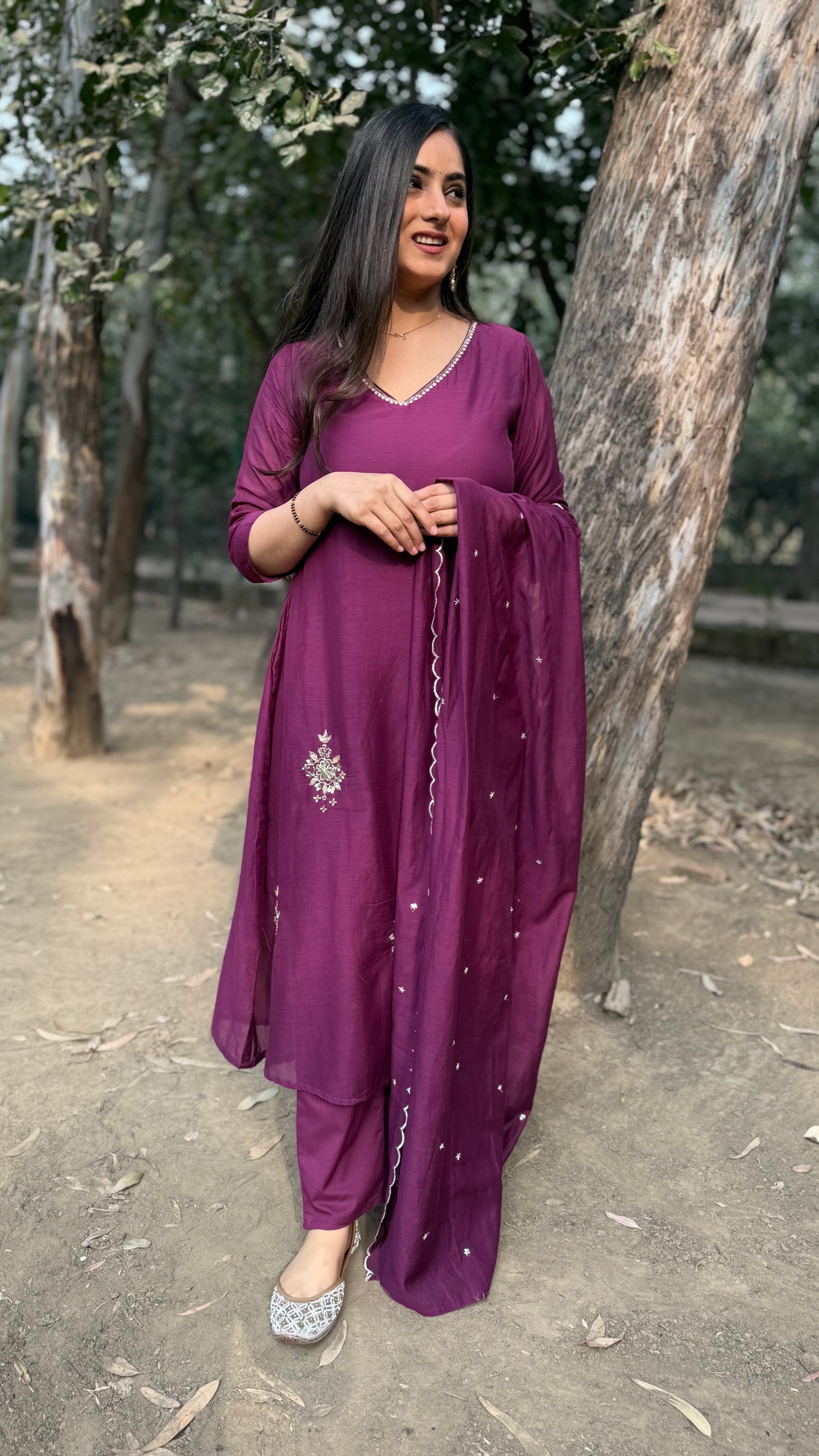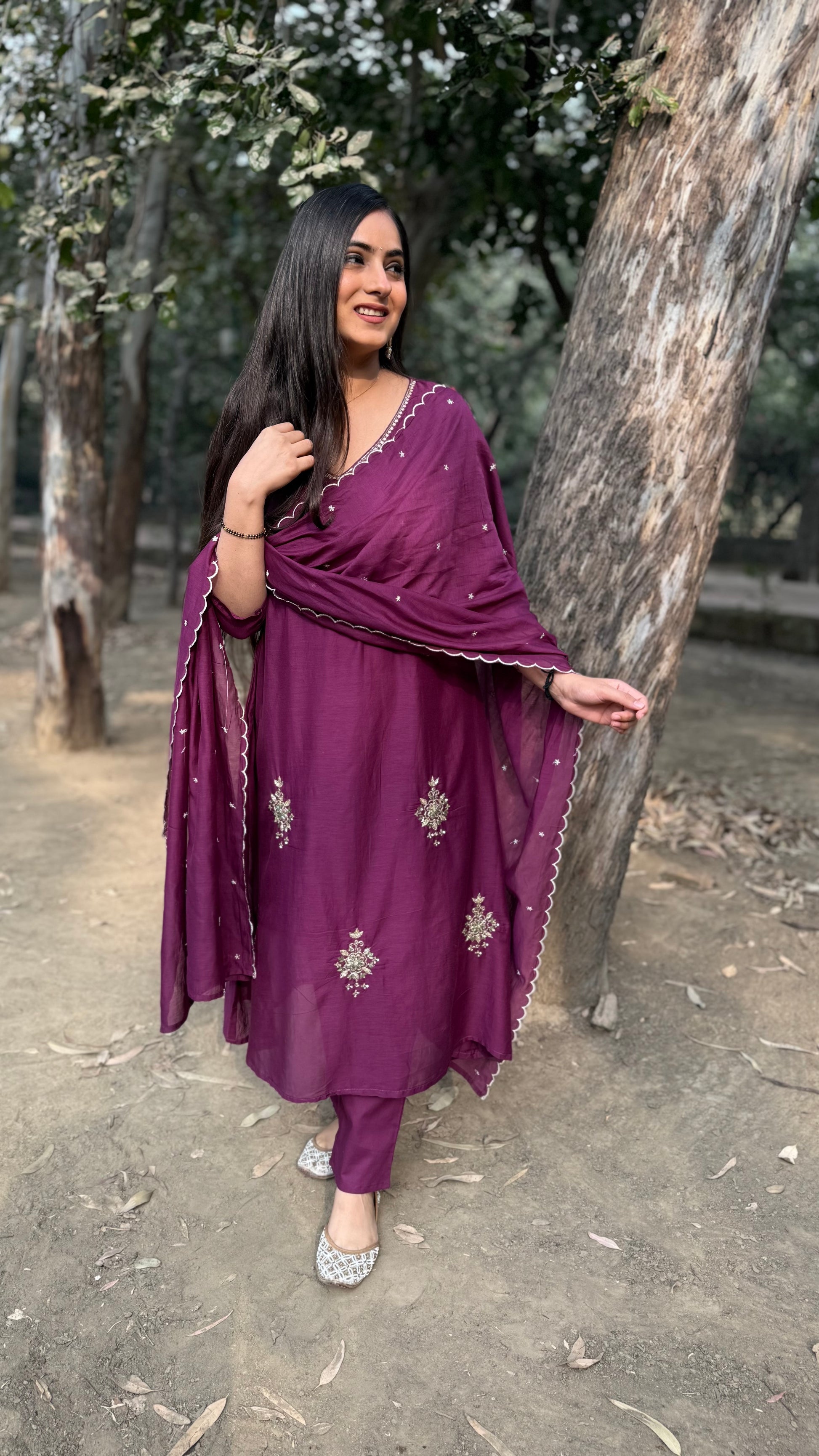 Bring out the adorable side of yourself, as you slip into our most gorgeous outfit from the Mul Chanderi collection. The embroidery details of this outfit will surely make you feel like you own it all!