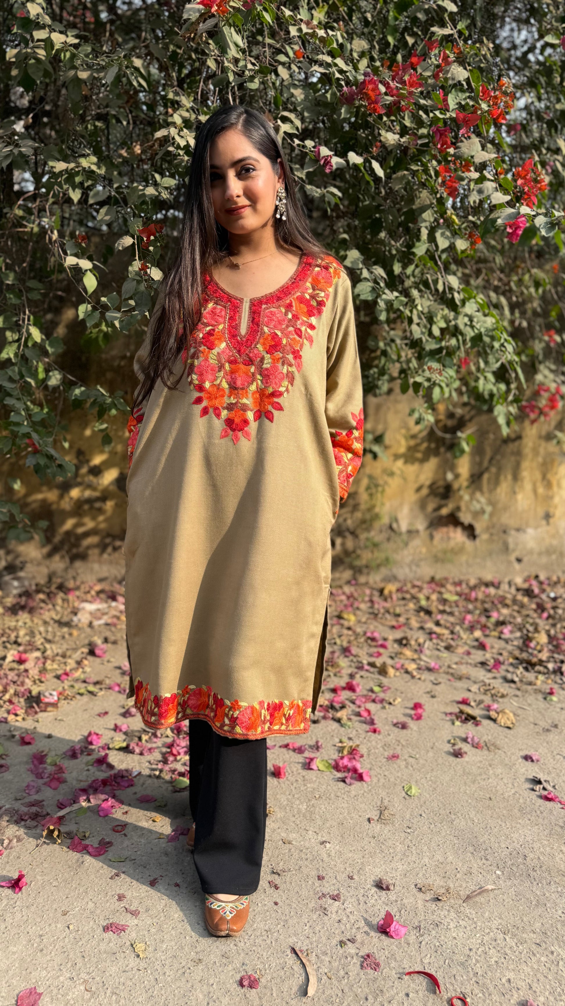 Beige Embroidered Phiran  in magical hues of Beige are chic, comfortable, and perfect for fun vibes! The set features a Embroidered Phiran . Complimenting the top, comes in woollen fabric.